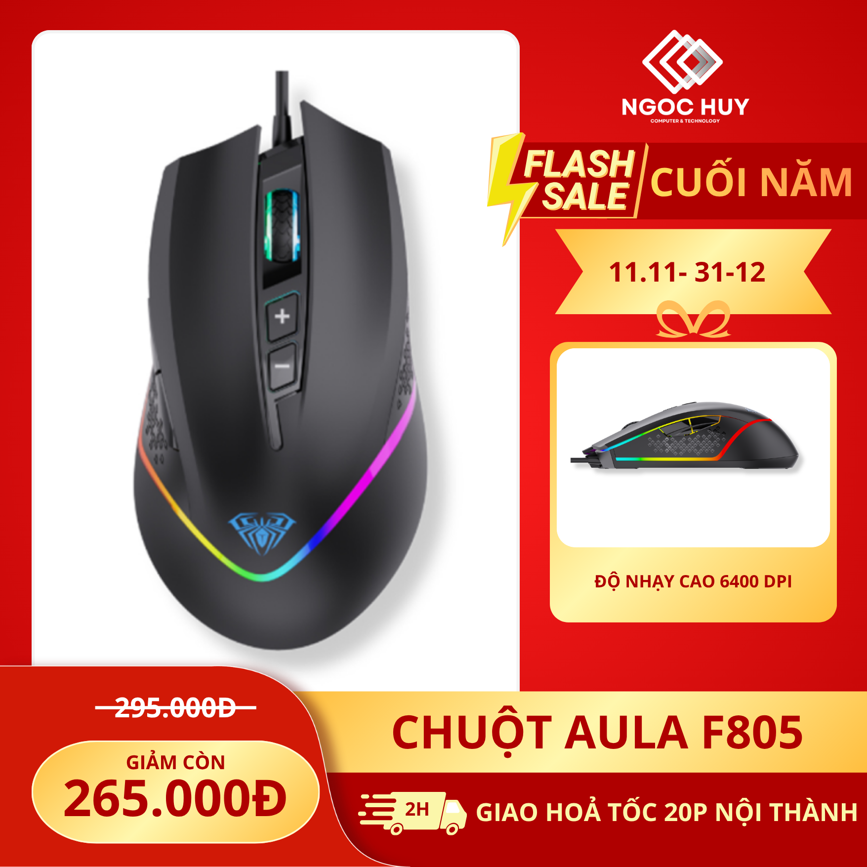 Chuột có dây DAREU LM130s RGB – thiết kế đối xứng, cảm biến PAN3512 với độ phân giải 1000 DPI, đèn LED RGB 7 màu, độ bền 10 triệu lần nhấn. Phù hợp cho học sinh, sinh viên và người dùng văn phòng.Chuột có dây AULA F805 Led Rainbow USB Gaming