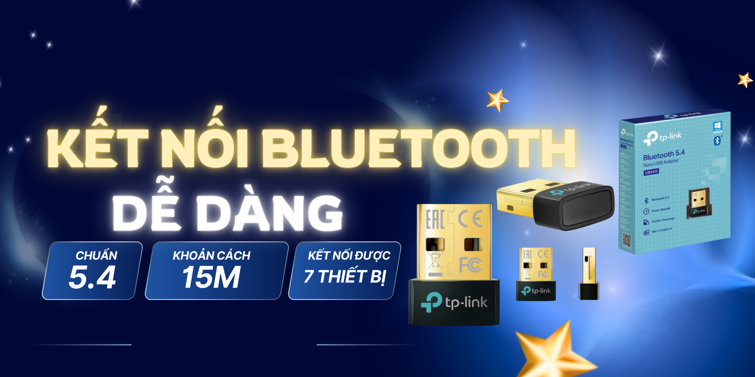 USB Bluetooth 5.3 Nano TP-Link UB500 – thiết bị nhỏ gọn giúp nâng cấp máy tính để bàn hoặc laptop của bạn với kết nối Bluetooth 5.3 ổn định, tốc độ cao và phạm vi rộng.USB Bluetooth 5.3 Nano Mercusys MA530